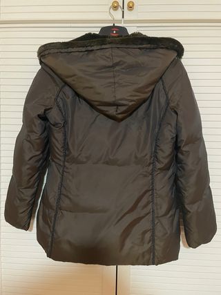 Vendo este abrigo de plumas acolchado de Zara en perfecto estado, con muy poco uso. Relleno de calidad: Composición de 50% plumón y 50% pluma, lo que lo hace ligero pero muy abrigado. Detalles de confort: La capucha está forrada de pelito suave y el interior de los bolsillos tiene forro polar, ideal para mantener las manos calientes. En la zona alta de la espalda también tiene zona de pelito, lo que lo hace muy confortable. Diseño: Los laterales cuentan con otro material elástico que estiliza la figura y permite mayor comodidad. Estilo entallado. Mira mis valoraciones.