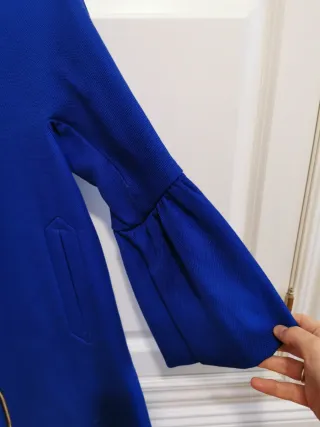 Abrigo de Zara en un vibrante color azul. Tiene cremallera frontal y mangas acampanadas. Está nuevo con la etiqueta