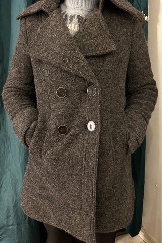 Abrigo de lana de Zara en color gris. Un clásico para mantenerte abrigada con estilo. - Diseño de doble botonadura. - Cuello solapa. - Bolsillos frontales.
