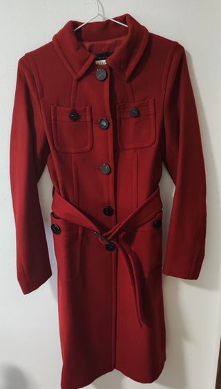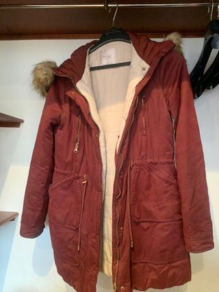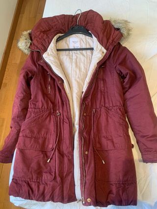 Abrigo granate de Zara. Es una talla S. Se puso un par de veces pero está en buen estado, se puede ver sin compromiso.