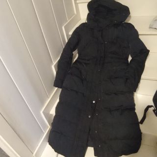 Abrigo plumífero largo con capucha. - Capucha con pelo. - Cierre de cremallera y botones. - Bolsillos laterales con cremallera.