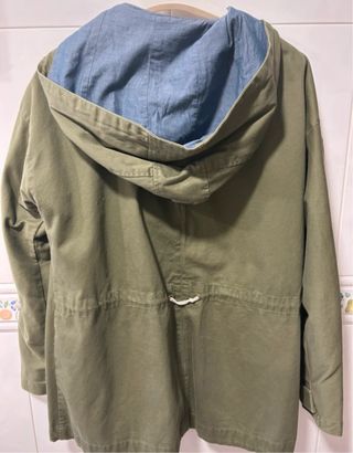Parka de estilo casual con capucha, ideal para el día a día. Cuenta con un forro interior de tela vaquera. - Cierre de botones a presión. - Dos bolsillos delanteros con botón. - Cordón ajustable en la capucha.