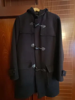 Abrigo tipo trenca con capucha, perfecto para el frío. - Cierre de cremallera y botones. - Bolsillos frontales. - Detalle de cordones en la capucha. -en la etiqueta pone XS pero talla como S holgada