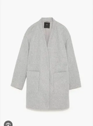 Abrigo de paño de Zara en color gris. Diseño elegante y moderno. - Tejido suave al tacto. - Corte recto. - Cuello solapa.