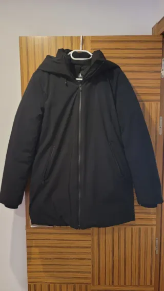 Anorak acolchado térmico de Zara en color negro, talla M, perfecto para clima frío, es muy aislante, con cremalleras selladas, se abre por abajo también para mayor comodidad, protege del aire y la lluvia, es impermeable. Tiene un bolsillo interior en la parte delantera y asas interiores para llevar colgado como se ve en fotos, con capucha, y puños estilo neopreno en las magas. Puesto muy pocas veces, esta prácticamente nuevo.