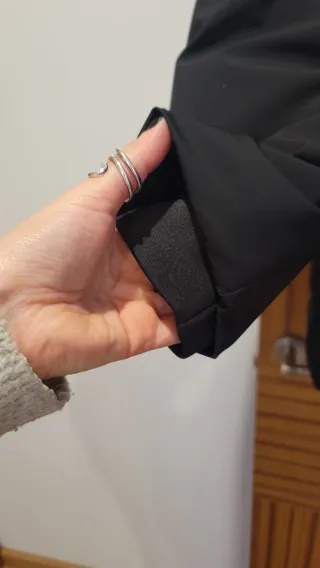 Chaqueta acolchada combinada de Zara en color negro, con mangas y partes laterales en material tipo neopreno y resto acolchado, incluida la capucha. Talla M, queda ceñida. Puesta dos o tres veces. Hago descuentos por la compra de varios articulos de hasta el 40%! Echa un vistazo a mi perfil😊