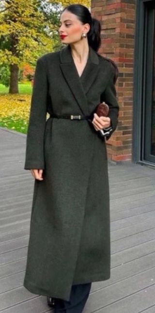 Elegante abrigo largo de Zara, perfecto para el otoño o invierno. Confeccionado con un tejido de lana que aporta calidez y estilo. - Diseño cruzado. - Cinturón para ajustar la silueta. - Bolsillos laterales.