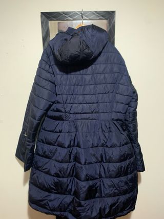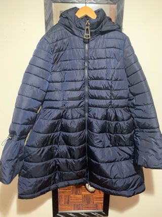 Abrigo acolchado largo de Zara. - Diseño con capucha. - Cierre de cremallera. - Bolsillos laterales. Es talla Xs pero da hasta una talla M, L es muy amplio.
