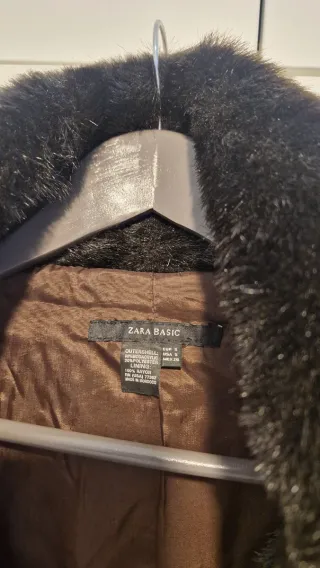Elegante abrigo de pelo sintético de Zara. Su diseño con cuello amplio y corte moderno lo hace perfecto para añadir un toque sofisticado a cualquier conjunto. - Material exterior: pelo sintético. - Forro interior de satén.