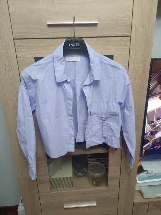 Sobrecamisa de la marca ZARA en color azul. - Diseño de manga larga. - Bolsillo de parche en el pecho con detalle de hebilla. - Cuello camisero.