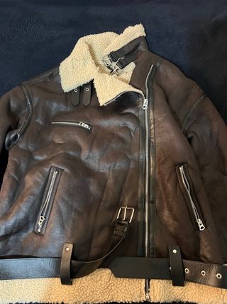 Chaqueta oversize de Zara con detalles de ante en el cuello y final de las mangas. Tiene goma en la cintura para que quede ajustada. Es una talla XS pero sirve para S y M, talla grande. Muy poco uso.