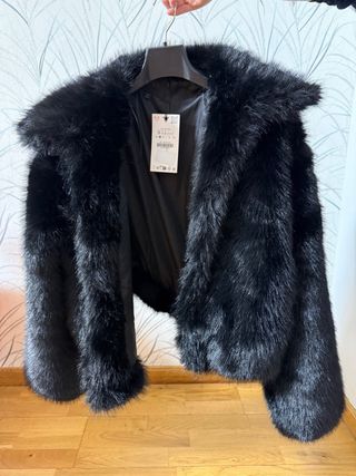 Abrigo de pelo sintético de Zara. - Tacto muy suave. - Diseño corto y elegante. - Forro interior satinado.