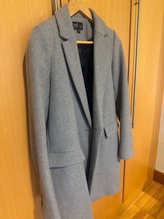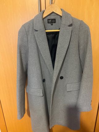 Abrigo de paño gris de Zara TRF. - Diseño de corte recto. - Cierre cruzado con dos botones. - Bolsillos frontales. - Cuello solapa.