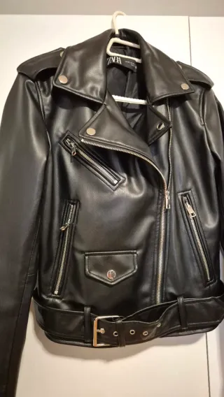 Cazadora estilo Biker de Zara. - Diseño clásico. - Cremalleras plateadas. - Cinturón ajustable. - Usada solo una vez.