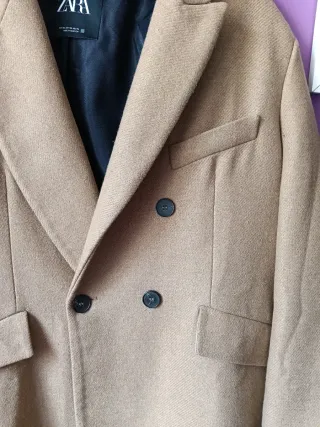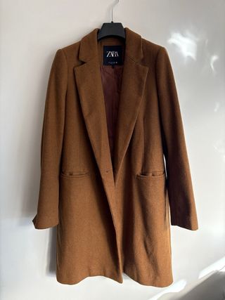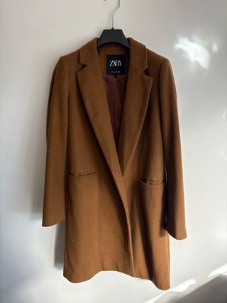 Elegante chaquetón de Zara en color camel,perfecto para añadir un toque sofisticado a tu armario. - Diseño clásico con solapas. - Cierre de dos botones. - Bolsillos frontales. - Forro interior.