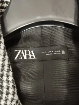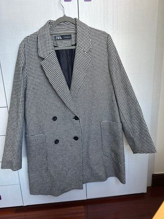 Abrigo Zara Cuadro Vichy Negro Blanco