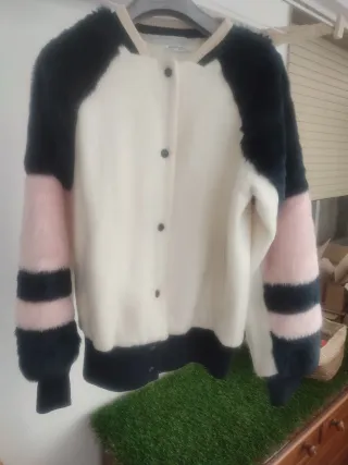 Nunca se ha usado, comprada por capricho. Cazadora de pelo sintético super suave con un diseño de rayas llamativo. - Diseño de rayas horizontales. - Cuello redondo.