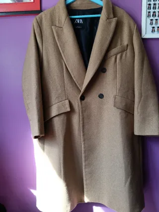 Abrigo largo estilo oversize de Zara de esta temporada. Un básico para cualquier armario. Puesto en dos ocasiones - Diseño de doble botonadura. - Bolsillos laterales. - Cuello solapa