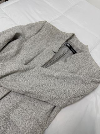Elegante chaqueta de Zara con un diseño de espiga. - Color gris - Tejido texturizado - Cuello solapa - Corte moderno Por debajo de glúteos Fina y corte mujer