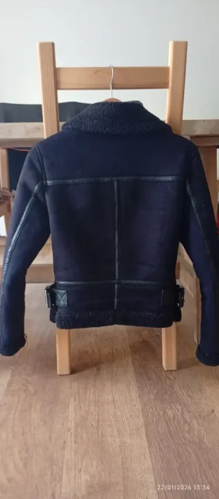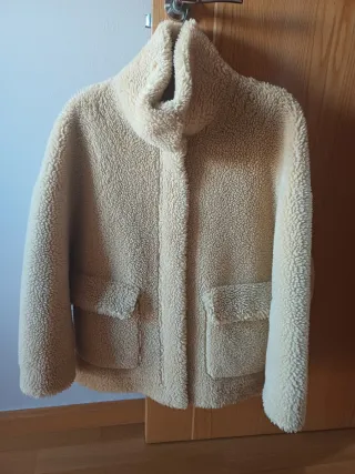 Abrigo de borrego de Zara. Es una prenda cómoda y cálida. - Cierre de botones. - Dos bolsillos delanteros.