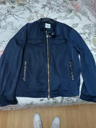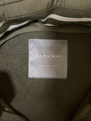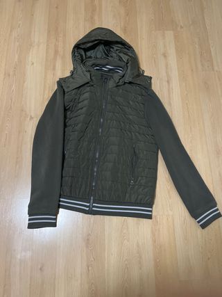 Chaqueta de Zara con un diseño moderno y práctico. - Color verde militar. - Capucha integrada. - Cierre de cremallera. - Puños y bajo con detalles de rayas. TALLA POCO, la talla engaña Precio negociable