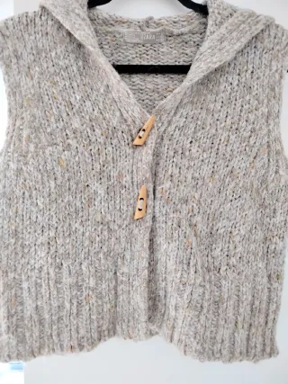 Chaleco de punto grueso con capucha, ideal para el invierno. Cierre de botones de madera. - Tejido de punto - Diseño sin mangas - Capucha integrada - Cierre de botones de madera