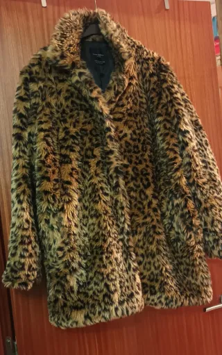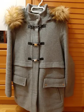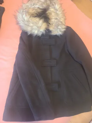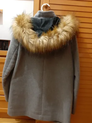 Abrigo de paño con capucha de pelo sintético. - Cierre de botones. - Bolsillos delanteros. Solo lo he usado una vez aunque suene tópico. Pero es real