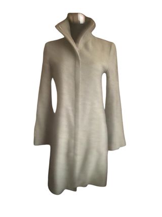 Abrigo de paño en color beige. - Diseño clásico con solapas. - Corte recto. - Largo hasta la rodilla.
