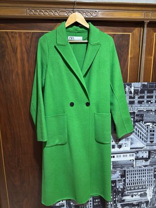 Abrigo de lana de Zara en un llamativo color verde. Diseño elegante y moderno. - Cierre cruzado con botones. - Bolsillos frontales. - Cuello solapa.