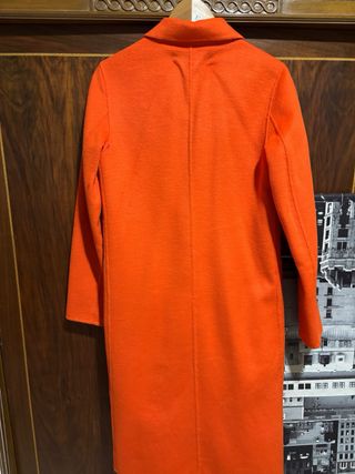 Abrigo largo de Zara en color naranja, ideal para añadir un toque vibrante a tu armario. - Diseño de doble botonadura. - Bolsillos frontales. - Cuello solapa.