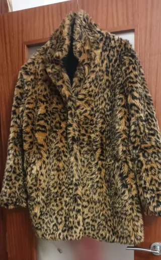 Abrigo de pelo sintético con estampado de leopardo. - Diseño de pelo largo y suave. - Cuello amplio. - Cierre de botones.