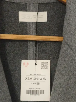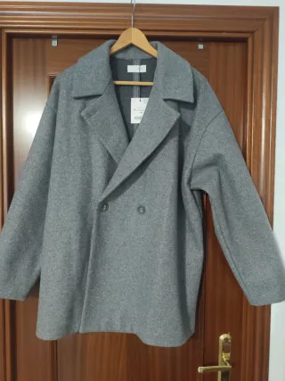 Oversize largo de paño, está perfecto para cualquier ocasión. - Poquísimo uso está perfecto. - Diseño cruzado con dos botones, cruzado. - Bolsillos laterales. - Cuello solapa. - recoger en Zaragoza.