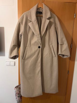 Abrigo elegante de Zara en color camel. - Diseño clásico con solapas. - Cierre de un botón. - Bolsillos frontales. - Forro interior. - Lana