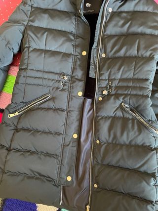 Abrigo acolchado de Zara, perfecto para el frío. Muy abrigado. - Diseño acolchado. - Cierre de cremallera. - Capucha integrada. - Bolsillos con cremallera.