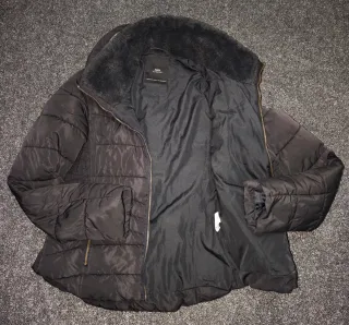 Chaqueta acolchada con cuello de pelo sintético. - Cierre de cremallera frontal. - Bolsillos laterales con cremallera. - Puños elásticos.