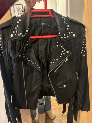 Preciosa chaqueta de cuero de Zara, en perfecto estado. Es una prenda elegante y versátil, ideal para cualquier ocasión. - Talla L (equivalente a 42-44 o 52-54) - Diseño impecable - Acabados de calidad