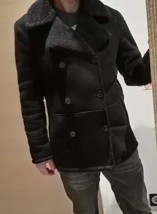 Elegante abrigo para hombre de Zara Man, talla 40. Exterior de poliéster e interior de borreguito. Muy caliente. Cierre cruzado con botones. En buen estado, exceptuando algunos roces junto a los bolsillos y en los codos. Ver fotos. #abrigo #zaraman #abrigotalla40 #abrigoshombre #abrigoscalientes #abrigoborreguito #zaratalla40