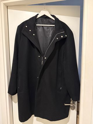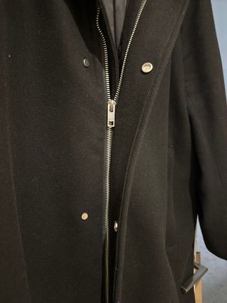 Abrigo de la marca Zara Man en color negro. Muy elegante y en muy buenas condiciones.Un básico para tu armario. - Talla L. - Cierre con cadena dorada.