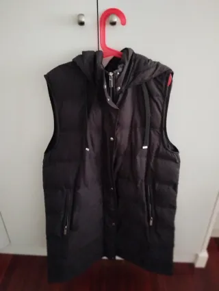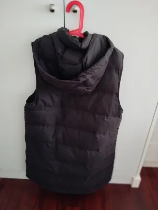 Chaleco acolchado con capucha de Zara. - Cierre de cremallera. - Bolsillos laterales con cremallera. - Cordones ajustables en la capucha.