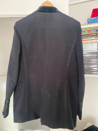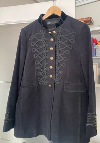 Chaqueta estilo militar con detalles bordados. - Cuello alto con terciopelo. - Botones dorados. - Adornos trenzados en la parte delantera. - Puños con detalles. - Bolsillos frontales. Muy buen esrado