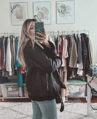 Chaqueta de cuero sintético de Zara. - Diseño tipo biker. - Cuello mao con cierre de botón. - Cremalleras en bolsillos delanteros y puños. - Detalle acolchado en hombros y mangas.