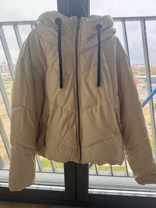 Chaqueta acolchada de Zara con capucha. - Cierre de cremallera. - Bolsillos laterales con cremallera. - Cordones ajustables en la capucha