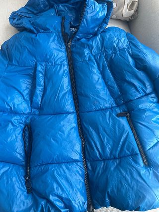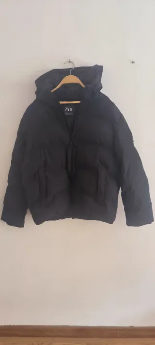 Chaqueta acolchada de Zara, ideal para el frío. Tiene un poco descosido los bolsillos por el interior - Diseño con capucha. - Cierre de cremallera. - Bolsillos laterales.