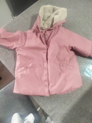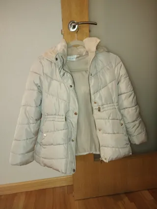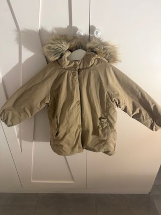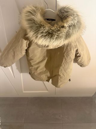 Chubasquero para niña de la marca Zara en color beige. Ideal para protegerse de la lluvia. - Forro interior de pelo. - Capucha con pelo. - Cierre de cremallera. - Bolsillos delanteros.