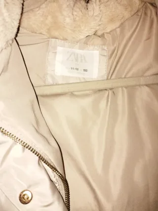 Abrigo de Zara para niña en color beige. Ideal para mantenerla abrigada con estilo. - Talla 11-12 años. - Medida en cm: 152. - Fabricado en Myanmar (Burma).