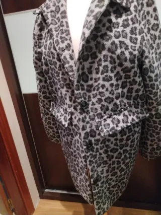 Abrigo corto con estampado animal. - Diseño de solapa. - Bolsillos frontales. -Comprado en sección niños, talla 13/14.Que en adulto seria una talla S.
