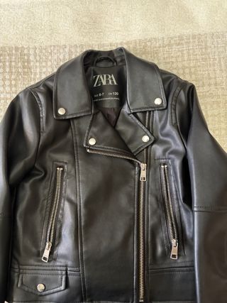 Chaqueta de cuero sintético para niña. - Diseño tipo biker. - Cierre de cremallera frontal. - Bolsillos con cremallera. - Puños con cremallera. - Detalle de hebilla en el bajo.