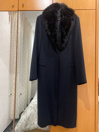 Elegante abrigo largo de Zara con un sofisticado cuello de pelo sintético. - Diseño clásico y atemporal. - Cierre frontal. - Bolsillos laterales. - Largo hasta la rodilla.