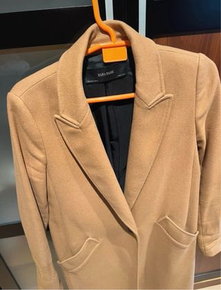 Elegante chaquetón de Zara en color beige. Un básico atemporal para cualquier guardarropa. - Diseño clásico con solapas. - Cierre de un botón. - Bolsillos laterales. - Forro interior.