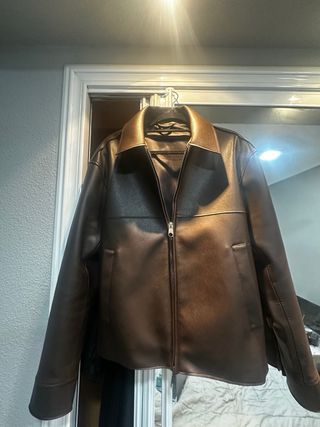 Chaqueta Zara Efecto Piel Marrón Talla L